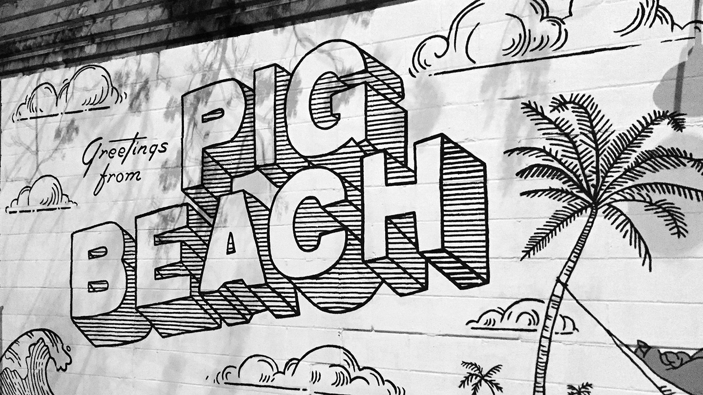 I was approached by the owners of Pig Beach to create a fun, family-friendly brand identity for their expansive space on the Gowanus canal. The work was extensive, covering everything from hand-lettered menu boards to colorful wall pieces inside the dining area. Most recognizable is the mural I designed and painted on their exterior wall, which has been featured on sites such as EaterNYC and Elle Magazine and has inspired many an impromptu Instagram photo shoot.