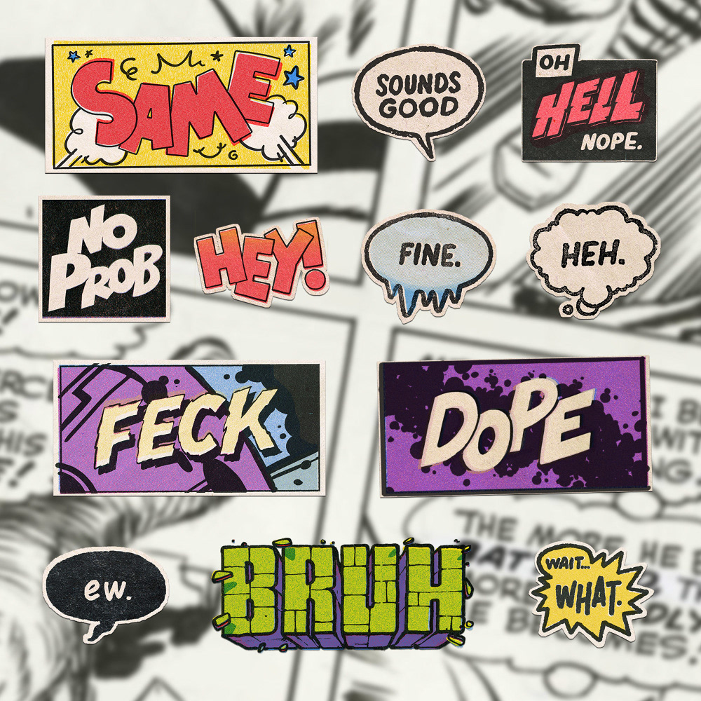 How do you do fellow kids? Two sets of textable stickers for Path. Hey, all the cool kids are using 'em-get with the program. These hi-tech stickers harken back to a simpler time from the pages of your favorite childhood pulp comics and scratch n' sniff stickers. Far out!